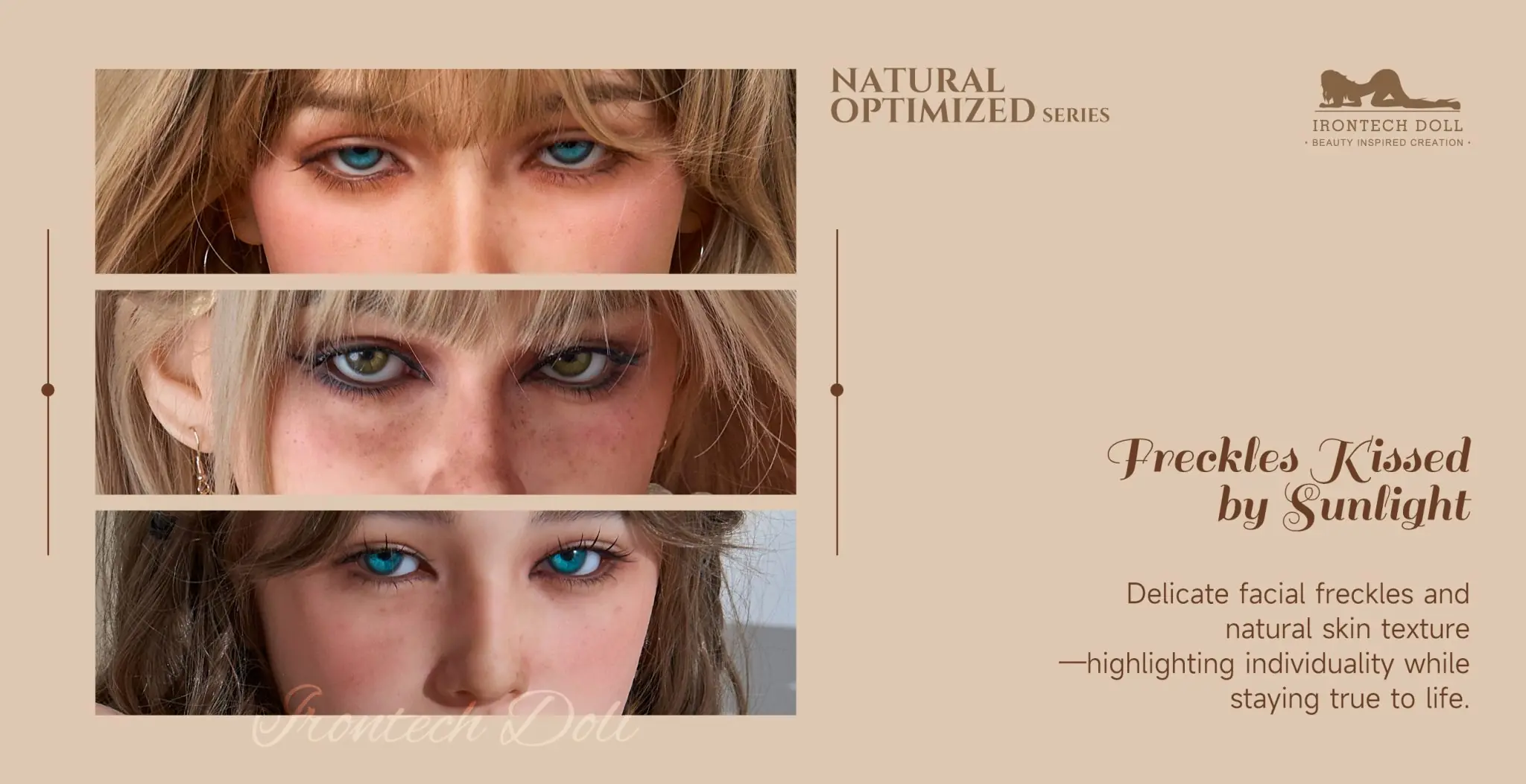 The freckles adorning the 160cm Minus body’s face are a true testament to the dedication and skill of our artisans. Each freckle was individually placed over weeks of intricate handcrafting to replicate the subtle beauty of sun-kissed skin. This level of detail, paired with the seamless texture of her face, creates a harmony of realism and individuality. These freckles are not just details—they are the soul of the design, capturing the beauty of imperfection with breathtaking authenticity.