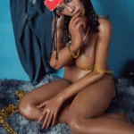 This black sex doll embodies the energetic vibe of rock style. Her deep gaze and fiery charm exude confidence. Wearing a red bandana, gold chains, and ripped jeans, she perfectly represents personality and allure. Every curve of her body is meticulously sculpted, showcasing both sensuality and power. Her black skin shines with natural luster, and the elastic skin detail with perfect curves makes her look more realistic and captivating. She is the embodiment of black sex appeal, balancing softness and strength perfectly.