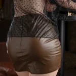 Now, she dwells beneath the amber glow of a rustic bar’s lights in the Western dusk, the most hypnotic figure in the room. Her sheer blouse, a quiet act of defiance; the glass of whiskey in her hand, a mirror of long-buried memories.